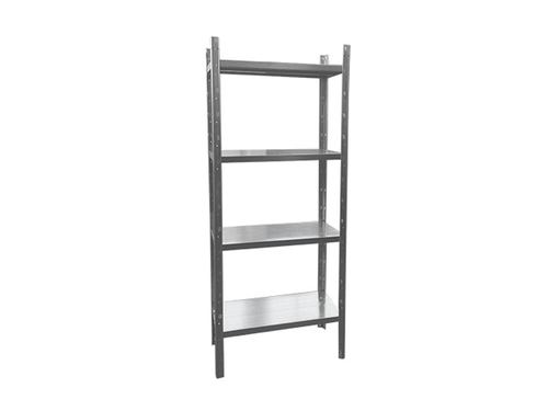 Scaffale da ripostiglio in metallo non componibile con 4 mensole ad incastro.